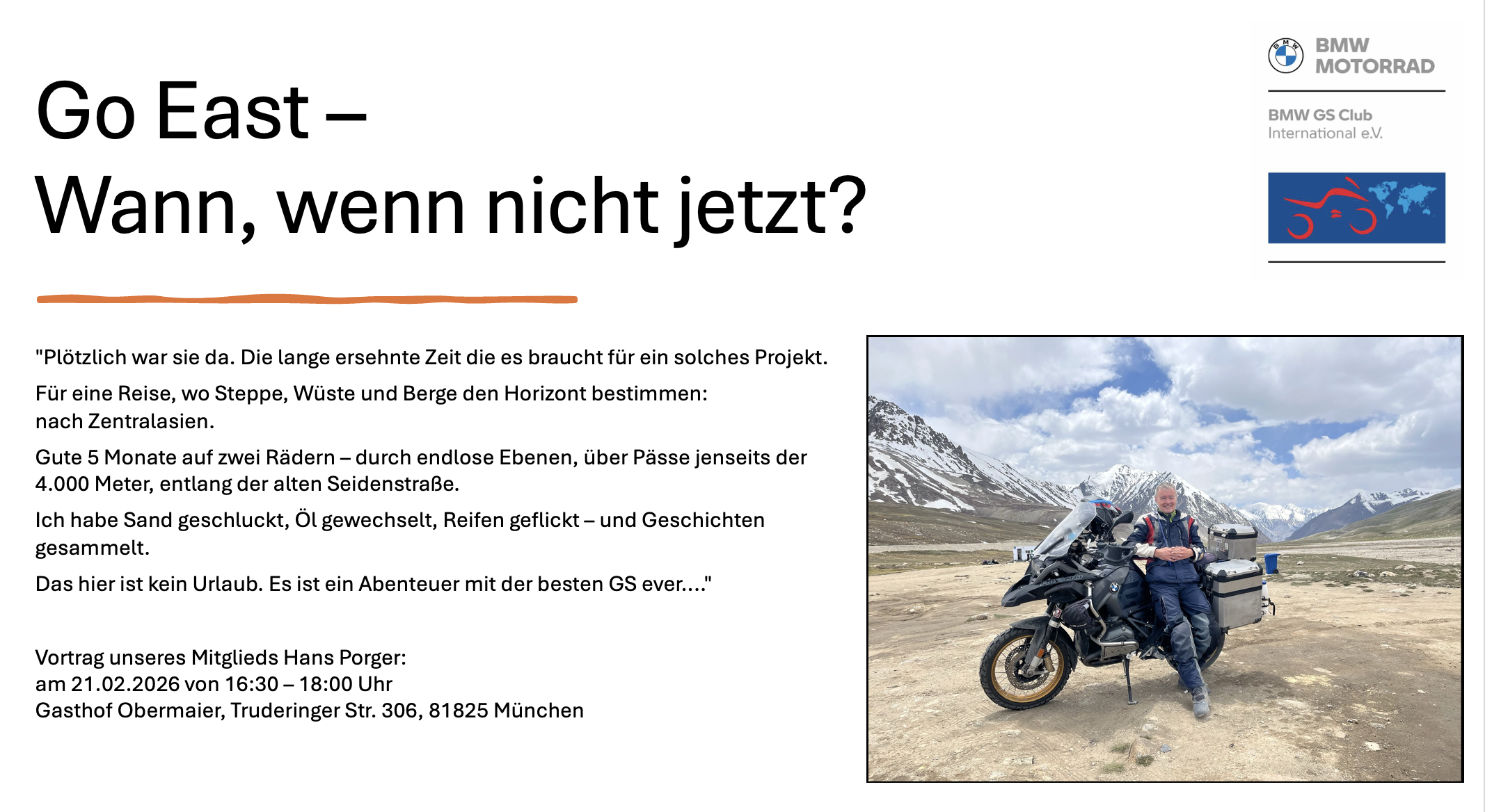 Wir sind der offizielle BMW GS Motorradclub mit Sitz in München, gegründet am 20. August 2015. Wir veranstalten spannende Touren und interessante Treffen verschiedenster Art im In- und Ausland. Auch Nicht-Mitglieder sind dazu eingeladen und willkommen. Über neue Mitglieder im Club freuen wir uns. Lerne uns doch einfach auf einem unserer nächsten Stammtische oder einer Ausfahrt kennen. Informationen zu unseren Stammtischen findest Du hier: