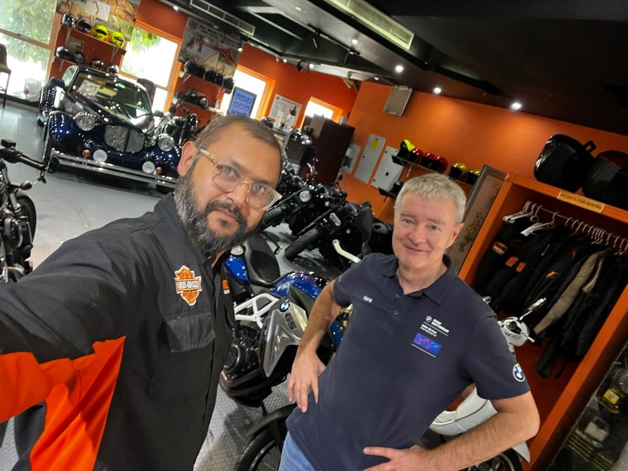 Ahmed wollte in Dubai noch bei Touratech vorbeischauen, in der Hoffnung, eine Lösung für seinen undichten Frontdämpfer zu finden.