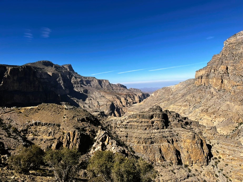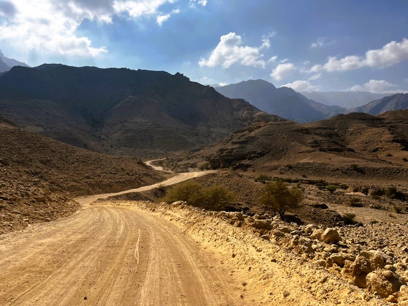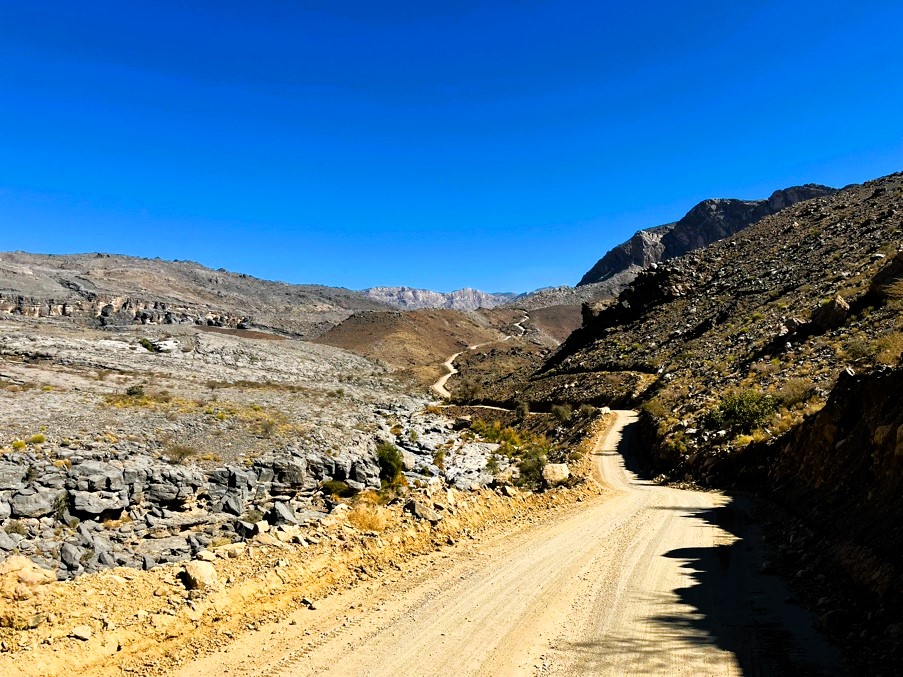 Am nächsten Tag ging es Richtung Nizwa. Dort betreibt ein weiterer Ahmed – den ich von meiner Zentralasien-Tour über WhatsApp kannte – einen Campingplatz. Vorher aber zog es mich unbedingt in die Berge zum Jabal Shams. Eine traumhafte Offroad-Strecke mit phänomenalen Ausblicken, hinauf bis auf gut 2.000 Meter.