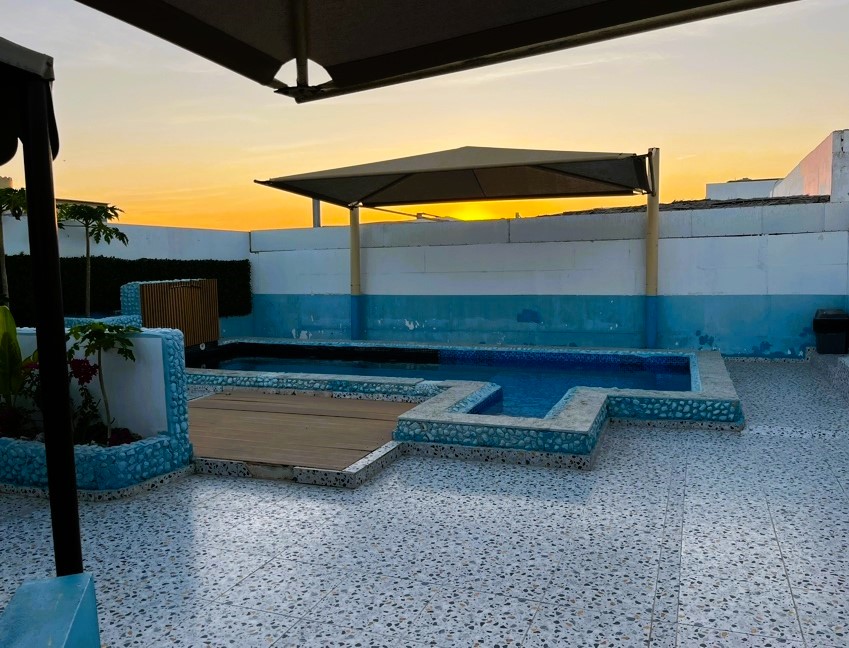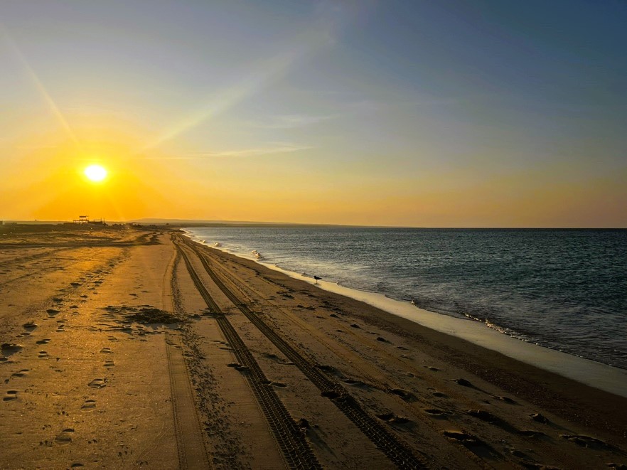 Am nächsten Tag ging es weiter Richtung Osten an die Küste nach Ras al-Hadd. Eine echte Genusstour, komplett auf Asphalt, später direkt entlang des Meeres. Die Unterkunft wirkte von außen unscheinbar, entpuppte sich innen aber als echter Glücksgriff – ich hatte die gesamte Anlage für mich allein.